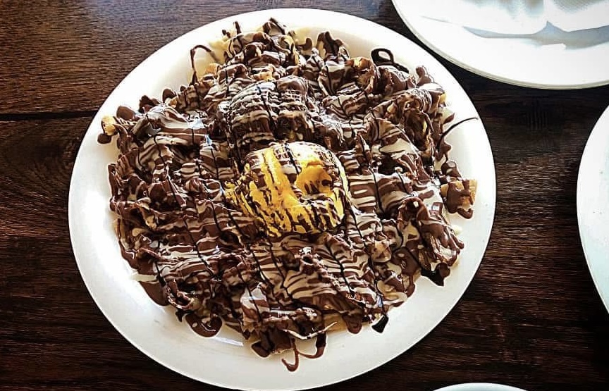 وافل + شوكاته بيضاء + شوكلاته سوداء+3 اسكوب ايسكريم
